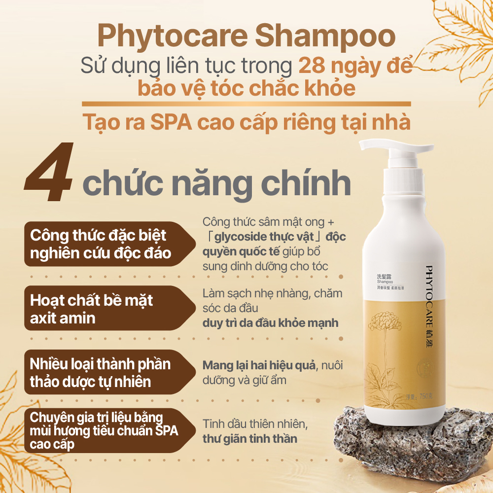 Thành phần chính của Dầu gội PHYTOCARE là sự kết hợp giữa các hoạt chất Cnidium monnieri và Sophora flavescens, cùng với hoạt chất chiết xuất từ nhân sâm có tác dụng giúp làm sạch da đầu nhờn và bụi bẩn trên tóc, giảm mùi mồ hôi và mang lại cho tóc cảm giác sạch sẽ, thoải mái.