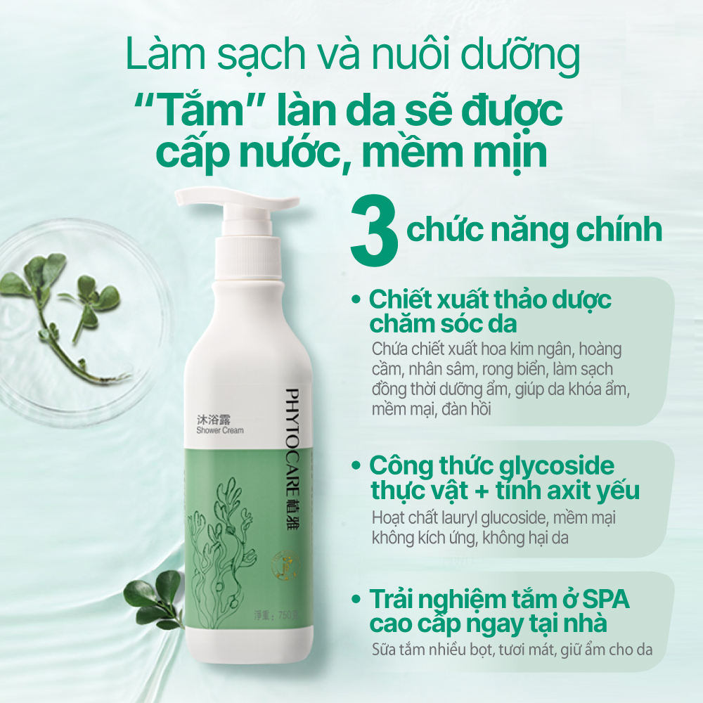 Chứa hoạt chất chiết xuất từ nhân sâm và chiết xuất rong biển giúp dưỡng ẩm sâu cho da, sau khi tắm sạch, hình thành một lớp màng bảo vệ trên bề mặt, giúp da khóa ẩm, mềm mại và đàn hồi hơn