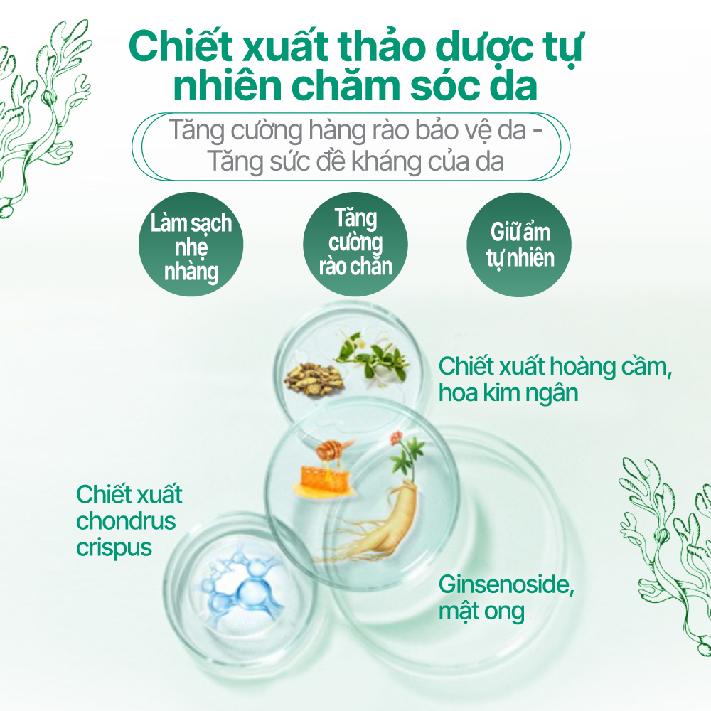 Kim ngân hoa, hoàng cầm, chiết xuất nhân sâm, chiết xuất rong biển, lauryl glycoside