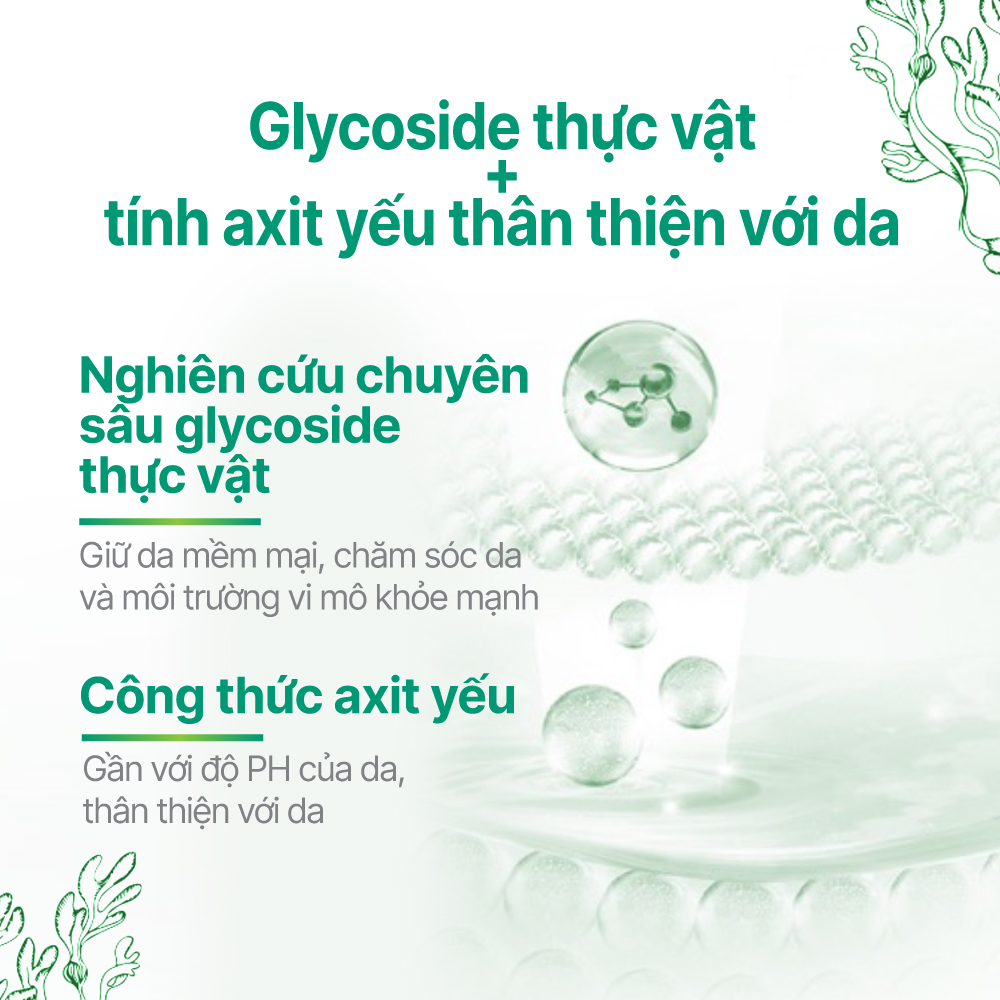 Ngoài ra sản phẩm còn chiết xuất hoạt chất mới là Lauryl glycoside, nhẹ nhàng trên da và không gây kích ứng.