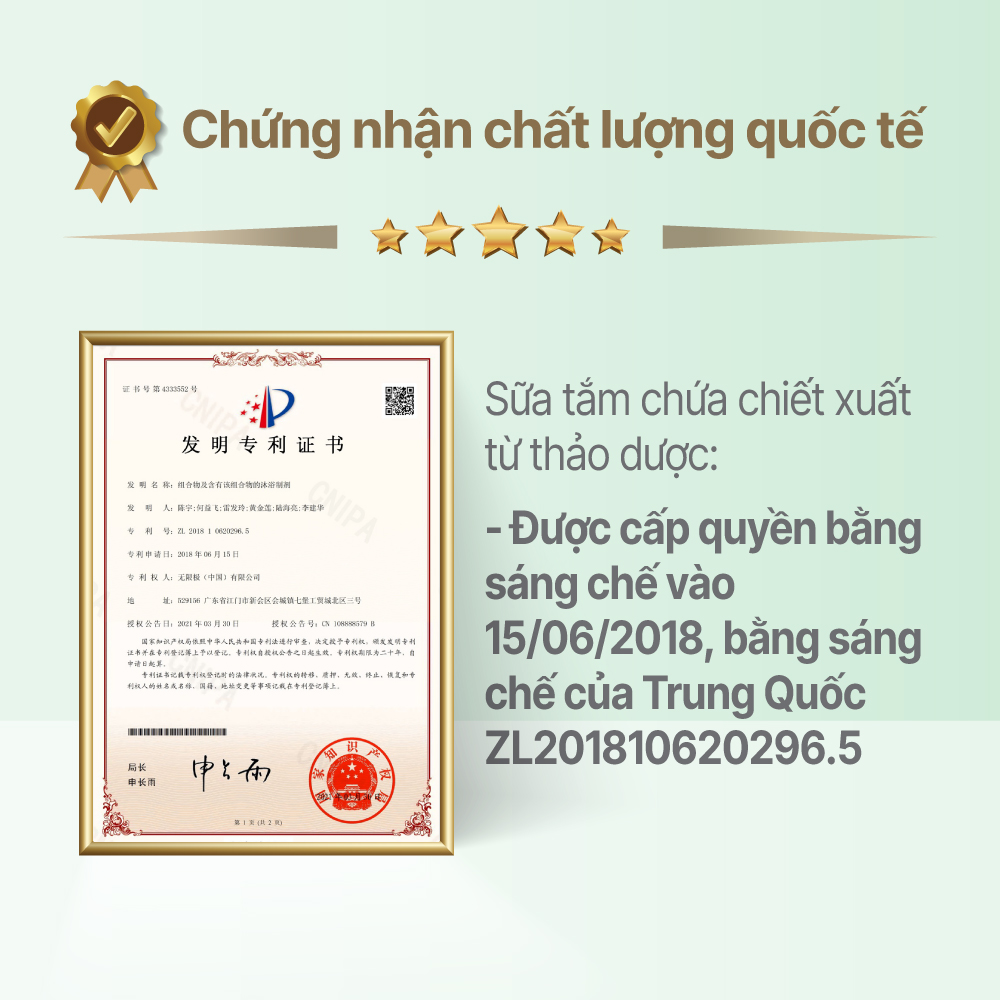 Được chiết xuất từ các loại thực vật như kim ngân hoa và hoàng cầm, cộng với hoạt chất chính chiết xuất từ nhân sâm giúp dưỡng ẩm sâu, không gây căng hay khô sau khi tắm, giúp da khỏe mạnh, mềm mại. Đồng thời hương thơm thực vật tươi mát tạo nên cảm giác sảng khoái giúp làn da tươi mát và thoải mái.