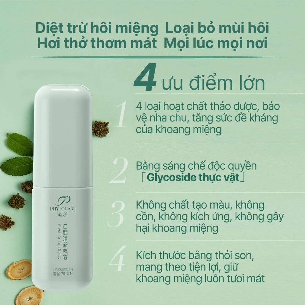XỊT THƠM MIỆNG PHYTOCARE HƯƠNG THẢO MỘC DỊU NHẸ GIẢM NHIỆT MIỆNG ĐAU HỌNG