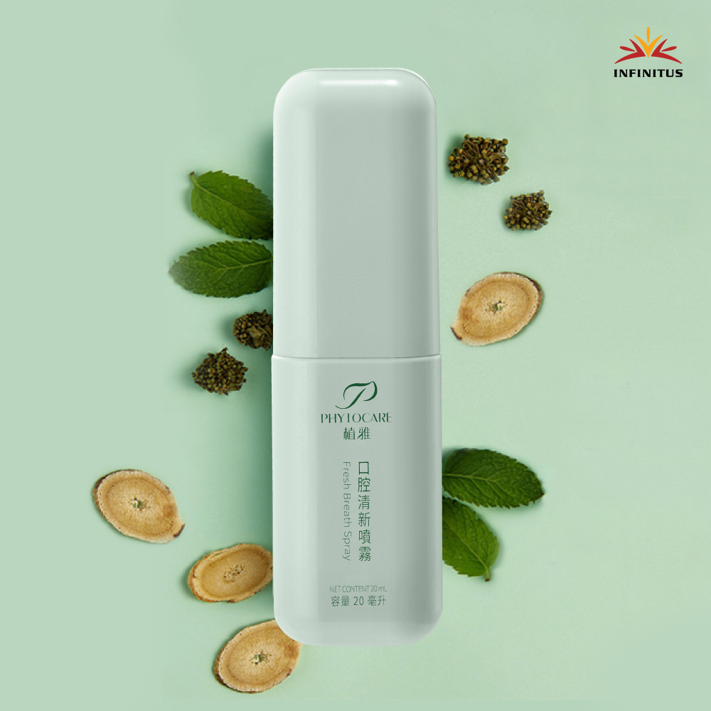 * Xịt thơm miệng PHYTOCARE chứa kim ngân hoa, trà xanh, mận khô, la hán quả và các chiết xuất thảo dược khác giúp hơi thở thơm mát tự nhiên. Sản phẩm không chứa cồn, an toàn không gây kích ứng. Có thể sử dụng mọi lúc mọi nơi để tăng sự tự tin và loại bỏ mùi hôi miệng.